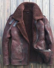 The dark Maroon Aviator shearling basholo b3 leather bomber jacket was the first jet jacket specifically designed for the most advanced bombers and their needs. The Aviator shearling leather Maroon Aviator leather jacket was introduced in the mid-1930s, made of sheepskin and lined with heavy wool.